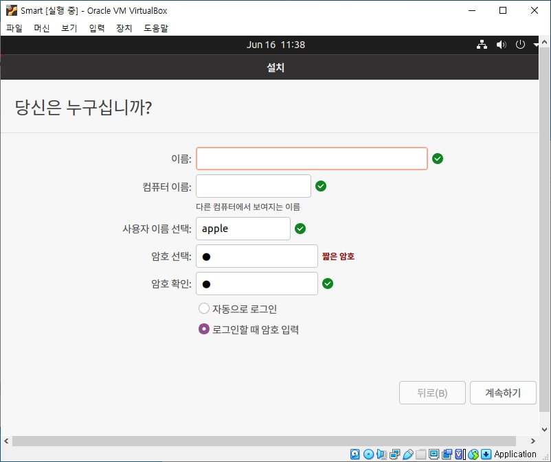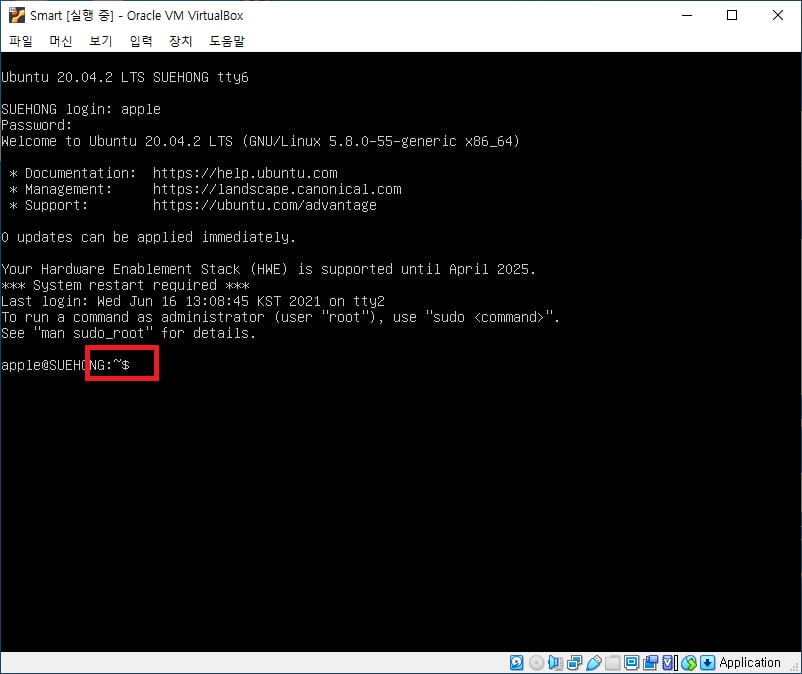 리눅스 특성상 비밀번호는 입력해도 표시가되지 않는다.(보안상의 이유)