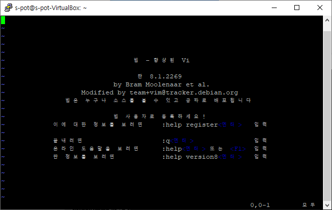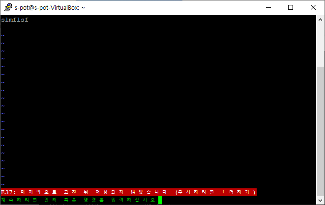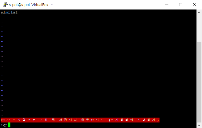 명령어모드에서 메모장모드에서 작성했던 내용이 있으면 q로 빠져나올 수 없고 q!를 입력하고 엔터를 치면 vi편집기를 빠져나온다.