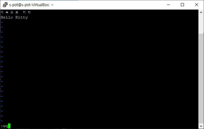 메모를 입력하고 wq를 눌러준다. w: 저장, q는 종료, 순서를 꼭 지켜줘야 한다. qw를 쓰면 안됨.