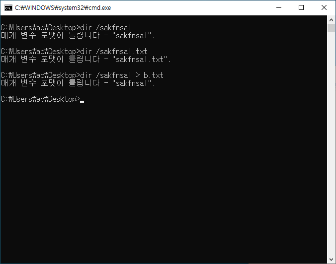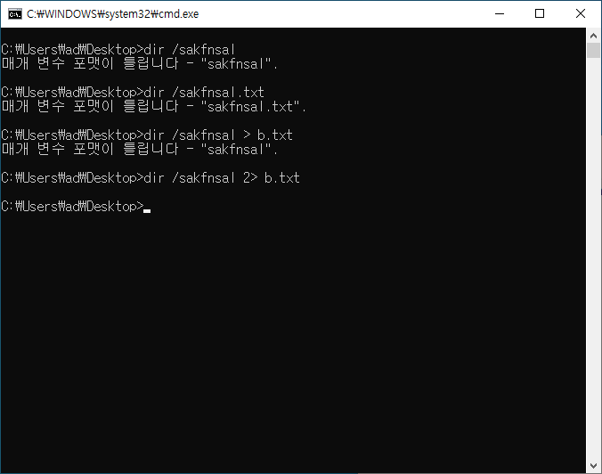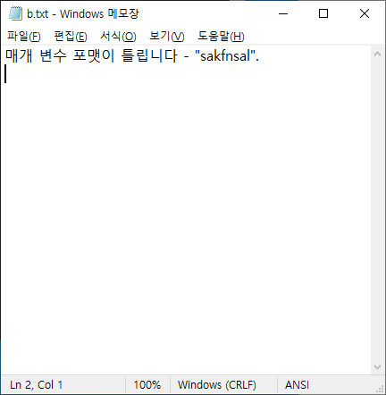 에러메시지가 뜨지 않지만 메모장안에 에러메시지가 표시된다.