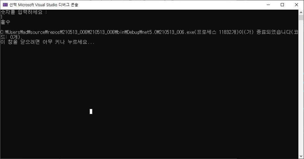 | 210513 C#_if문을 이용한 점수를 입력받는 코드 (0) | 2021.05.31 |