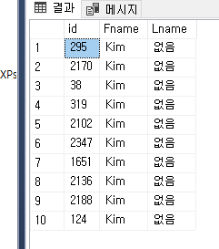 Fname이 Kim인 사람의 Lname을 없음으로 수정한다.