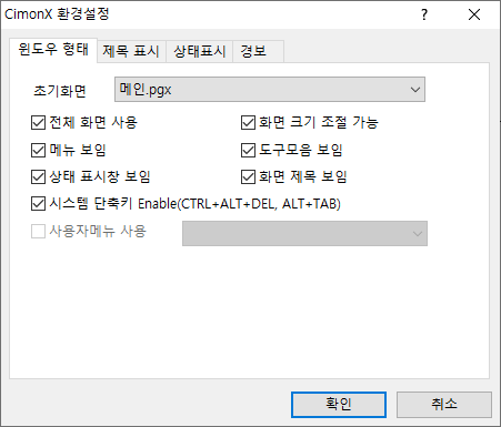 [도구] - [CIMONX 환경설정]