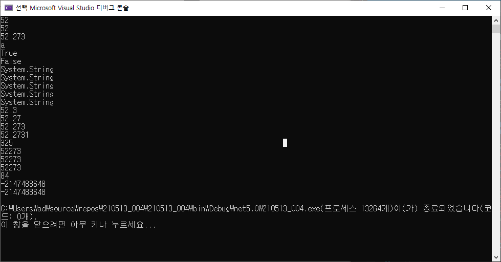 210513 C#_문자형으로 변경(ToString), 소수점 자리수 설정, GetType()